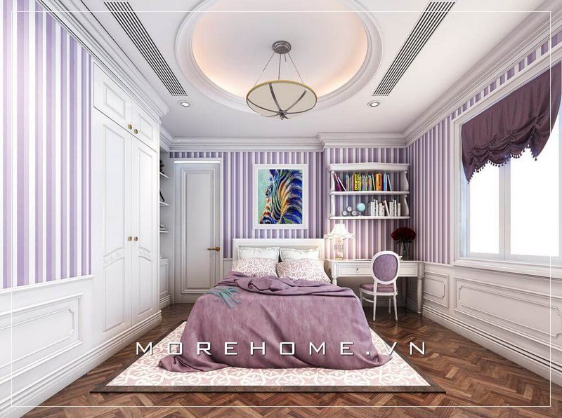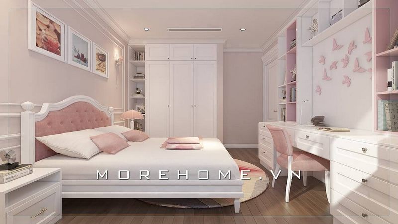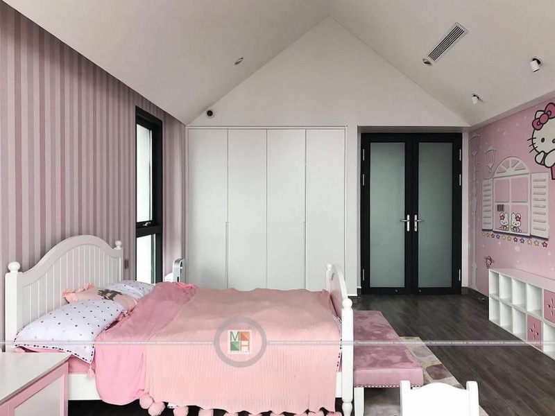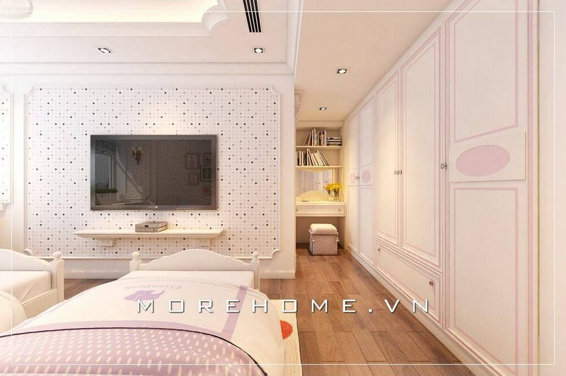 Thiết kế tủ quần áo phong cách tân cổ điển sang trọng cho phòng ngủ bé gái tại biệt thự cao cấp