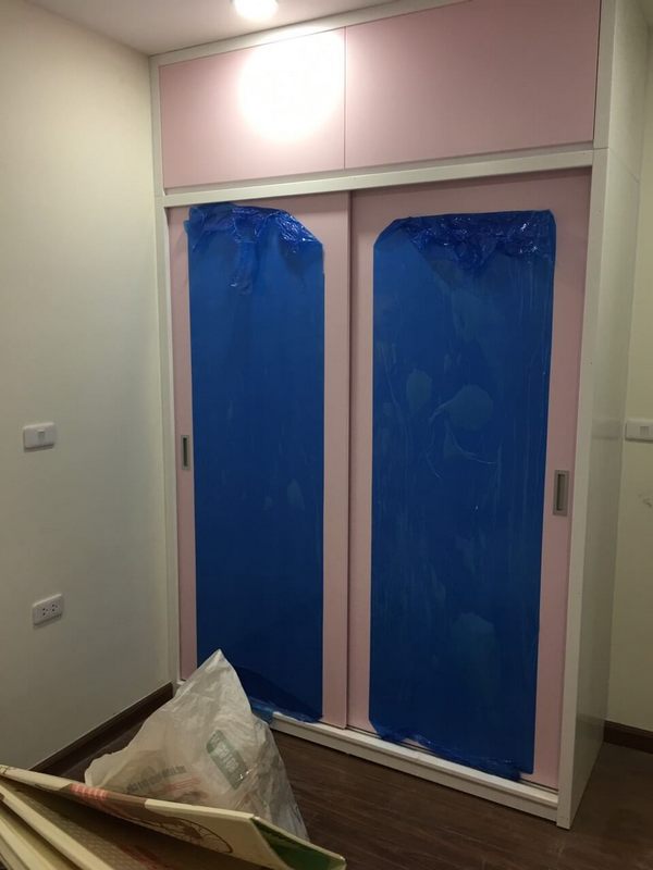 Thi công tủ áo phòng ngủ cho bé gái chung cư Eco Dream, tủ áo gỗ công nghiệp cánh lùa sơn cao cấp