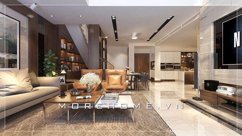 Nét đẹp hiện đại độc đáo, sang trọng, sự kết hợp ấn tượng trong phòng khách căn hộ thông tầng như Duplex, Penthouse.