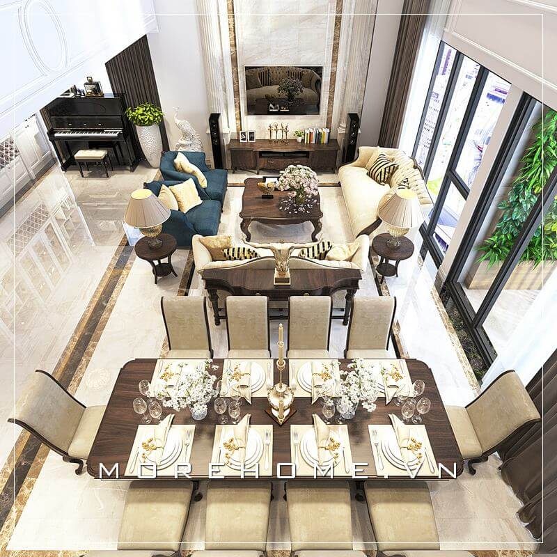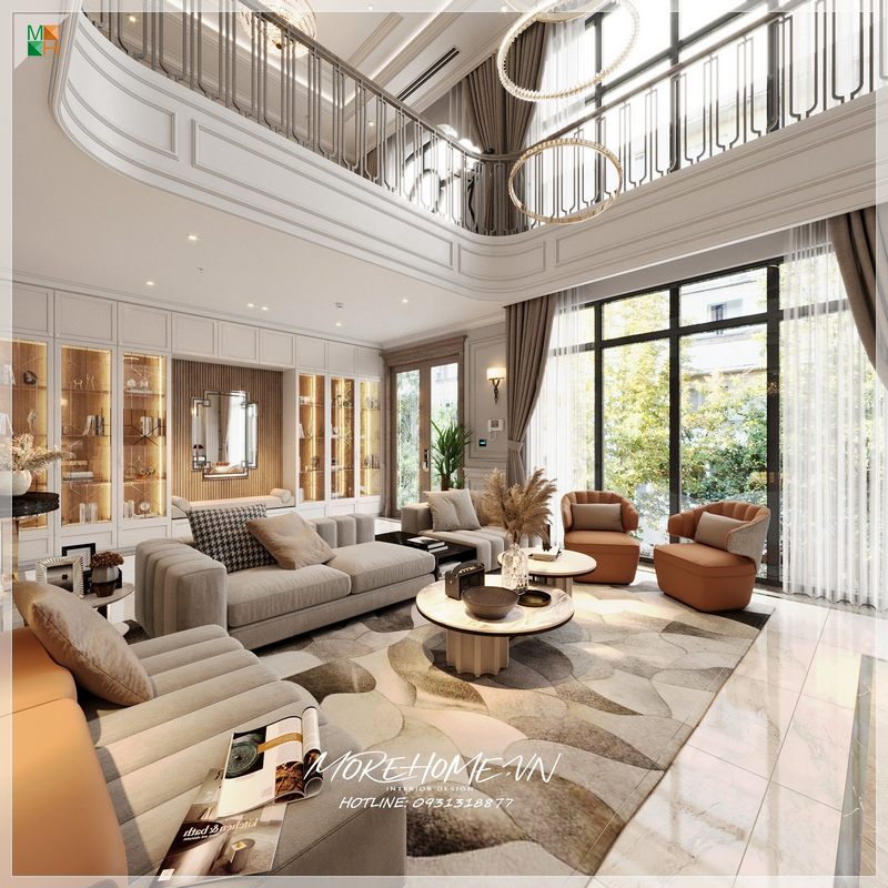 Thiết kế nội thất tân cổ điển đẹp dành cho phòng khách trong căn hộ thông tầng như duplex, penthouse.
