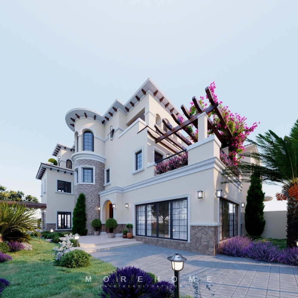 Mẫu thiết kế kiến trúc biệt thự phong cách tân cổ điển sang trọng ở hà nội