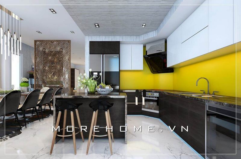 Mẫu thiết kế nội thất phòng bếp hiện đại và đẹp mắt cho nhà biệt thự.