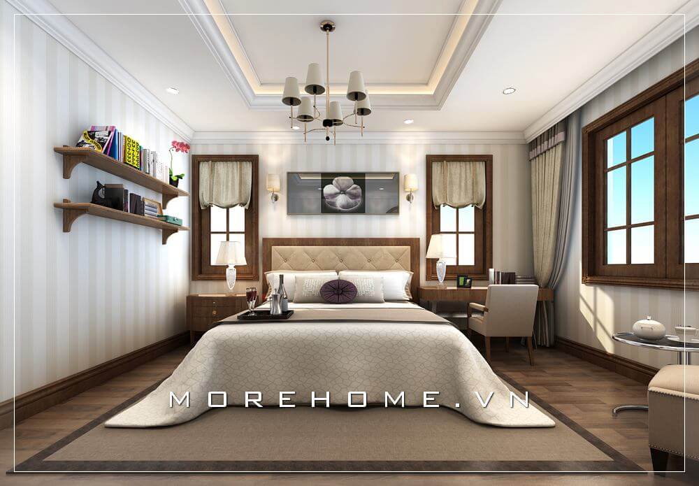 Thiết kế phòng ngủ biệt thự với nội thất giường ngủ đẹp gam màu nâu sang trọng
